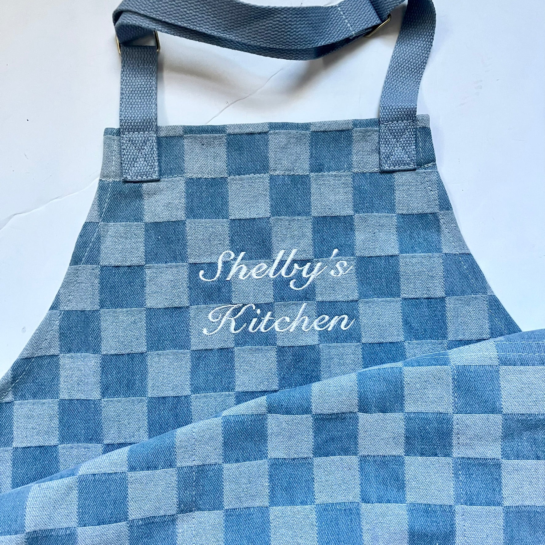 Personalized Denim Chambray Checkered Apron